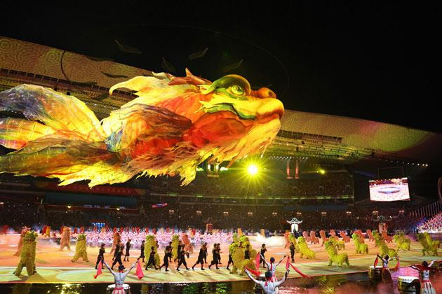 11月9日晚的广州,广东奥体中心灯火璀璨,珠江两岸流光溢彩。第十五届全国运动会在这里隆重开幕。