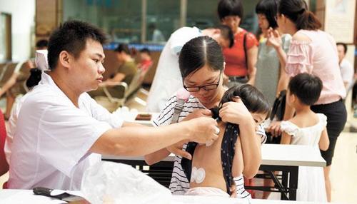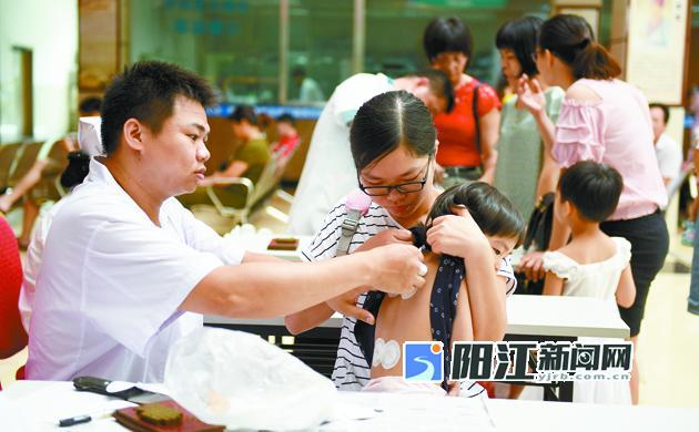 7日上午,市中医院医生给小孩进行天灸疗法。当日是三伏天灸疗法的伏前灸,8月16日为末伏灸,前后共有5伏,有“冬病夏治”需求的市民可在此期间按时前往医院贴药。宋福亮 摄影报道