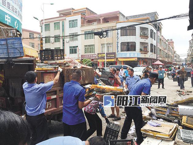 阳江日报讯(记者/邓贤志 通讯员/严鹏 梁文成)9日,阳春市春湾镇组织全体干部、职工以及相关职能部门和镇区各村(居)干部100多人,对镇区的“六乱”行为进行整治,共拆除、清理乱搭乱建、乱堆乱放等物品80余车。