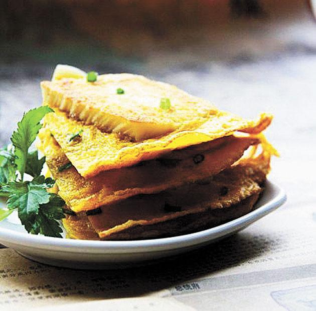 荷叶的草香跟茉莉的花香很搭调,两种食材搭配在一起做成的煎蛋,给味蕾带来盛夏黄昏水边的种种清凉和幽香。