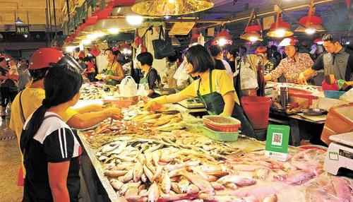 市民在东源市场购买海鲜。邓贤志 摄