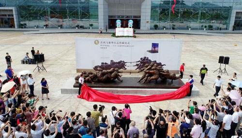 雕塑《快乐的胜利》揭幕现场。梁文栋 摄