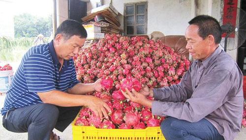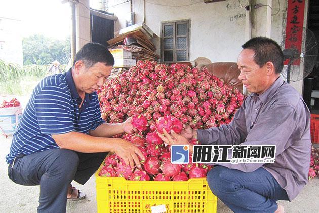 客商挑选果品上佳的火龙果。连日来,在阳春市春城街道黎湖、蟠龙村李级等的有机火龙果基地,吸引广州、深圳等地的水果采购商慕名而来,到此品尝选购有机绿色食品“红心肉”火龙果。春城火龙果基地呈现购销两旺的喜人景象。 余振昌 摄影报道