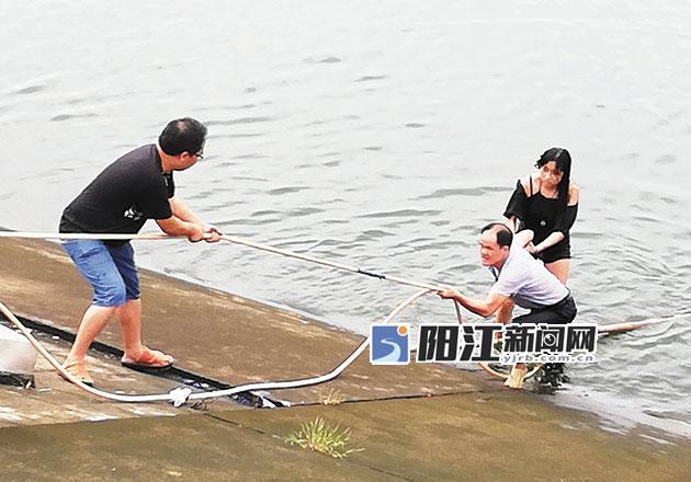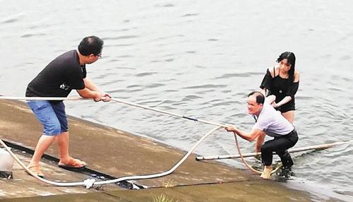 正驾车路过该处的几位市民见到这一幕,赶紧下车救人。有人跑到附近库区管理处拿来了淋花用的胶水管,有人拿来竹条,他们一起将胶水管抛向在湖水中挣扎的落水女青年。
