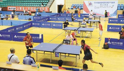 比赛期间,市体育馆内热闹非凡,运动员激战正酣,啦啦队在一旁加油呐喊。运动员中,年龄最小的不足10岁,最大的70多岁,他们因为一个小小的乒乓球聚在一起,互相切磋球技。阳江赛区比赛分为少年团体组、男子团体组和女子团体组,每个组别由3至4名运动员以及一名领队和一名教练组成,需要经过小组循环赛、晋级淘汰赛的多番较量。18日下午,组委会为各组别一至五名以及最佳组织奖、道德风尚奖颁发奖杯和证书。