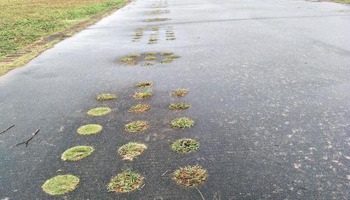 市区南国风筝场道路两侧对称分布着一组组圆坑。张影 摄