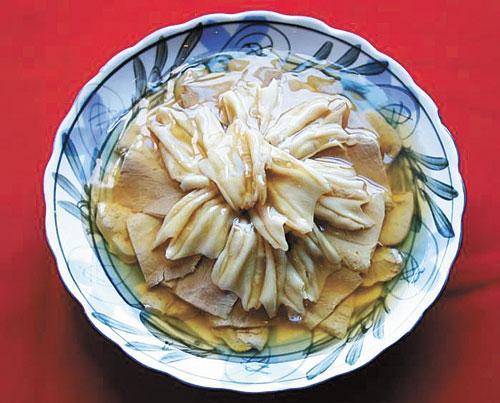 取板栗250克,洗净。将板栗从上轻剖一刀,使之裂口,放在清水中煮到裂口处张开,捞起泡在冷水中,待冷透后沿裂口处剥出板栗。待鸭块卤汁将干未干时将板栗放入锅中,翻炒均匀,卤汁收干即可出锅。此菜色泽金黄,既有板栗清香,又有沙茶酱特有的醇香,吃起来软嫩鲜美,甜辣适宜,让人胃口大开。