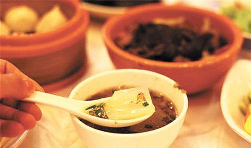 荷兰粉的名字虽说有点洋气,但它与“荷兰”没多大关系。荷兰粉是湖南的名小吃之一,尤以火宫殿周福生做的最为著名。相传在清乾隆年间,周福生在火宫殿挑担叫卖的荷兰粉是抢手货。他用蚕豆磨成粉制作成通体剔透、白色如玉的粉块,再切成薄片,加入筒子骨汤煮沸而成,因其色香味美大受欢迎而流传至今。