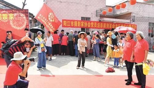 阳江日报讯(记者/王雄基)1日上午,阳东区东城镇丹载村举办首届外嫁女回乡活动。趁着国庆和活动的双重喜庆,市摄影家协会组织党员志愿者来到丹载村,开展影展下基层惠民免费拍照活动。