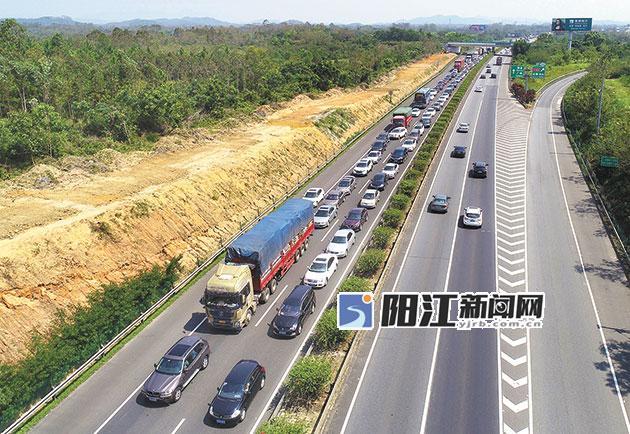 10月1日上午9时许,记者驱车从阳江收费站驶入沈海高速公路,向湛江方向行驶,一路上车辆较平日有所增多,但行车较为顺畅。然而到了中午12时左右,沈海高速与西部沿海高速开始行车缓慢,车辆在沈海高速阳江段部分路段排成“长龙”,车辆行驶时速只能保持在40至50公里左右。