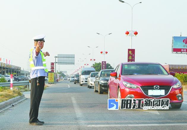 “十一”国庆假期,阳江各地迎来旅游、探亲出行高峰,主要高速公路、国省干线公路重要节点、重点时段车流量大幅增长。3日下午,记者来到省道277线平岗农场入口处,感受市公安局交警支队高新大队交警繁忙的工作。