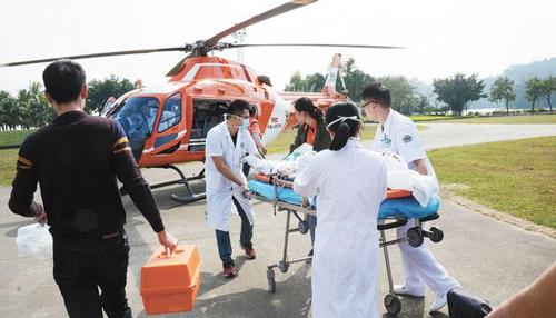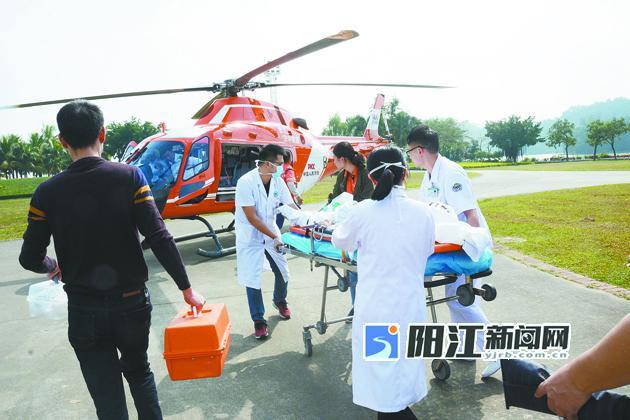 据了解,接受救助的是黄姓男患者,住市区,今年60多岁,10月28日入院。患者临床表现言语不清,有脑出血症状,在市人民医院接受手术后,在重症监护室接受治疗。为了接受更好的治疗,患者家属提出转院至广州继续治疗。考虑到阳江距广州有3小时的车程,加之长时间行车颠簸的情况,病人可能会有加重病情的危险。患者家属提出用救援直升机转院。