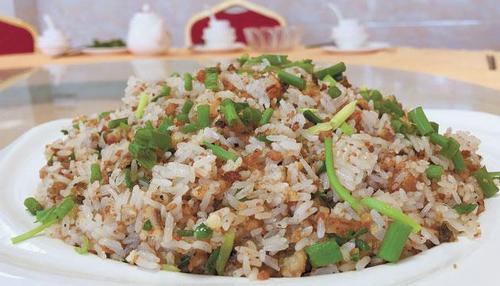 压力锅蒸煮米饭,剁肉也同时开始,刀工要快,肉才细滑有劲道。肉丁放到锅里,撒上油盐蒜各种调味料进行翻炒,鳝肉恰好熟透,米饭也熟了,再把炒好的鳝肉铺在煮好的米饭上进行焖焗。友叔告诉记者,炒肉、煮饭和焖焗,每一个环节的时间都要掌握得当。