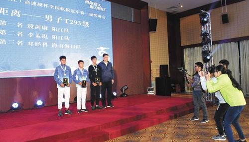 全国帆板冠军赛属于国家A级赛事,是我国专业帆板四大赛事之一,每年举办一次。本次赛事阳江队选派15名队员参赛,其中5名队员来自海陵中学,共夺得6金3银6铜。获得金牌的项目为:男子组Gaastra Pro(长距离)张志超,男子组T293(长距离)敖剑康,男子组Gaastra Pro(场地赛)张志超,女子组Gaastra Pro(场地赛)李晓研,男子组T293(场地赛)敖剑康,男子学校组T293(场地赛)陈俊宇;获得银牌的项目为:女子组Gaastra Pro(长距离)李晓研,男子组T293(长距离)李孟挺,男子学校组T293(场地赛)李文韬;获得铜牌的项目为:女子组Gaastra Pro(障碍赛)梁杰愉,男子组T293(障碍赛)李孟挺,女子组Gaastra Pro(长距离)刘嘉敏,男子组Gaastra Pro(场地赛)杨翔金,女子组Gaastra Pro(场地赛)刘嘉敏,男子组T293(场地赛)李孟挺。