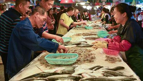大年三十,农贸市场肉菜供应充足,买卖两旺,接踵而来的市民在市场里选购年夜饭的食材。梁文栋 摄