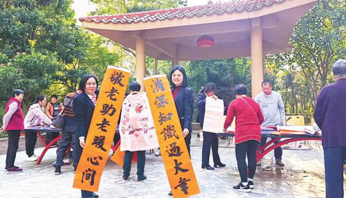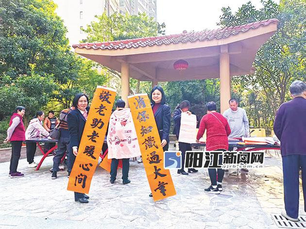 1月17日,阳江中行联合东泰花园小区开展“笔墨送春联 消保进民心”教育宣传活动。