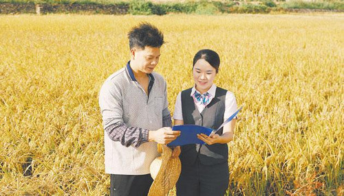 农行工作人员到田间地头了解情况。 岑燕红 摄