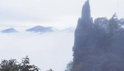 从聚贤台往左上行,沿着石质山脊步行约200米,云雾间,隐约望见一组石头,神似一只母鸡带着几只小鸡归巢。歇息片刻,只听有人“哇”地一声惊叹,我转身望去,云雾淡了许多,那组石头也清晰起来,而更远处,三五座山峰竟也在云顶露出了头,如茫茫大海上飘荡的几叶孤舟。我不免有些担心,云海汹涌翻腾,会不会将这些“小舟”忽地“冲”翻了呢?远景、近景,白色云雾成为这片景致的留白,我和同行的朋友纷纷举起手机、相机拍摄。再次翻看照片时,我心里又禁不住泛起了嘀咕:“如果照片洗出来,别人会不会怀疑那几座山峰是后期处理时,特意加上去的呢?!”