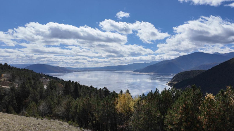 不知不觉间,大巴驶回香格里拉,又带我们来到可以俯瞰纳帕海全景的观景台。纳帕海虽名为“海”,实则是一片湖沼。若说此前观赏的山峦风光尽显磅礴气势,那么眼前的纳帕海,则恰似一方温润的碧玉,裹着温柔底色。湖面如明镜般澄澈,将天边流云、青山翠树尽数倒映其中。正逢秋意最浓时,纳帕海像是被打翻的调色盘,近处的树林层林尽染,翠绿、金黄、嫣红的叶片层层叠叠,交织错落,与远处的蓝天白云、青山远黛相映成趣,将秋的绚烂彰显得淋漓尽致。这片斑斓色彩猛然将我的思绪从雪山的清冽中拉回。是啊,当前正值赏秋绝佳时节。