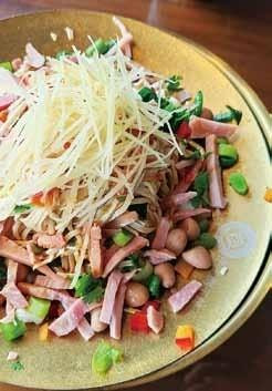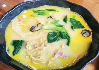 泰州早茶既有包子、油糕、蒸饺、干丝等与扬州相似的品类,又有以新鲜鱼汤做面条馄饨汤底的习惯。“一茶三点一面”是泰州人喝早茶的标配,一壶清茶、一碟烫干丝、一笼包子或是烧麦或是蒸饺,再加上一碗鱼汤面,丰盛而不奢华。其中,烫干丝、鱼汤面和蟹黄包被称为泰州“早茶三宝”。泰州的溱湖水域辽阔,水质清澈,孕育出的鱼虾蟹味道特别清甜鲜美,是全国著名的河蟹之乡,有着全国最正宗最好吃的蟹黄汤包,汤汁鲜美,蟹黄饱满,曾被拍进了《舌尖上的中国》系列。泰州的干丝被列入非遗手艺,这里的烫干丝因为用碱水浸泡过豆腐干,故而比扬州的煮干丝更加韧滑糯嫩。干丝烫工精准,细丝如云,堆在盘中如蓬松山峦,搭配姜丝、肴肉、虾米、花生、青椒、香菜、葱花、胡萝卜,再浇上麻油香酱,绵密与脆爽在舌尖交缠,堪称泰州早茶的灵魂。非遗技艺的鱼汤面亦堪称一绝,奶白浓醇的汤底以溱湖的鲜鱼和猪骨文火慢熬而成,香气四溢,放了点胡椒粉后愈加鲜香,汤内还沉浮着木耳、白菜、鲜笋、火腿、鲜虾、卤蛋、红萝卜等丰富的佐料。手擀面条筋道Q弹,吸饱了鱼汤的精华,入喉顺滑。寒气逼人的冬晨,一碗滚烫的鱼汤面落肚,浑身暖意洋洋,舒坦无比。泰州餐馆的食物分量都很大,价格却非常亲民,著名茶楼出品的一大碗鱼汤面足够两人食用,却只需18元,而8元一份的烫干丝更是老泰州人的日常,真正的物美价廉,物超所值。