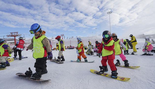 孩子在阿勒泰雪场撒欢。 新华社 摄