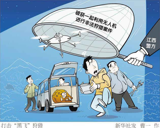 今年9月,江西省德兴市警方近期破获一起利用无人机进行非法狩猎案件。当地警方表示,“黑飞”狩猎已成为具有普遍性的安全隐患,热成像仪在夜间仅能识别目标轮廓,无法准确辨别人与动物,可能误伤村民、护林员等人员。类似的“黑飞”狩猎存在安全隐患,此类案件在全国多地均有发生。个案背后,一条借助网络平台的灰色产业链正在暗中滋生。面对无人机“黑飞”问题,一些地方公安部门也在积极探索应对之策。 曹一 作