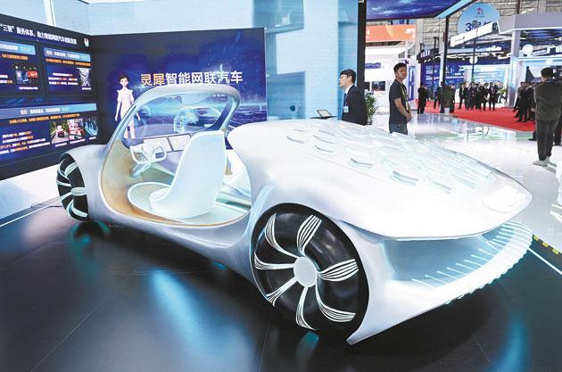 在第八届数字中国建设峰会现场体验区拍摄的灵犀智能网联汽车。 林善传 摄