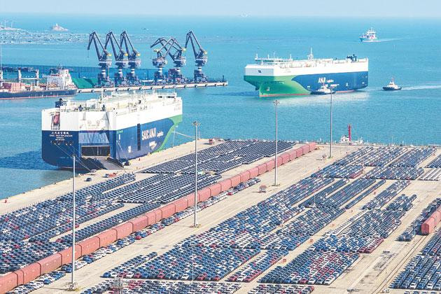 1月27日,在山东港口烟台港,汽车运输船在装载出口商品车。国家统计局27日发布数据显示,2025年,全国规模以上工业企业实现利润总额73982.0亿元,比上年增长0.6%。 新华社发