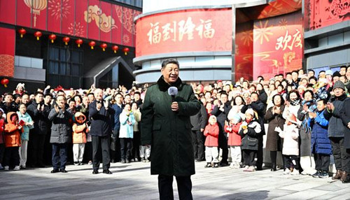 10日上午,习近平在东城区隆福寺街区考察时,向全国各族人民和香港同胞、澳门同胞、台湾同胞、海外侨胞致以美好的新春祝福。 新华社发