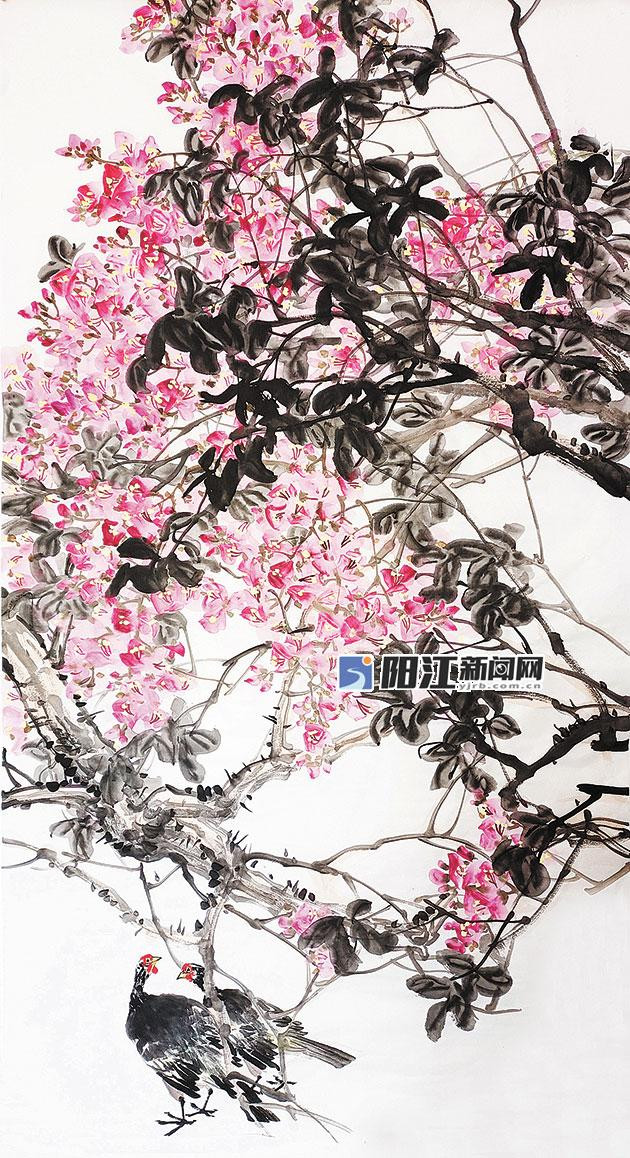 △ 《金翎照春辉》(国画) 305×145cm 岑今作品