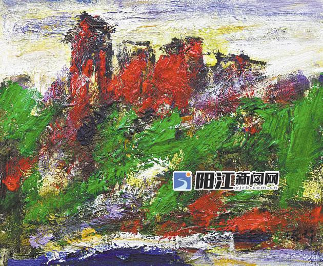 陈许的画有光的情韵和颜色情韵,其光色情韵包含浓烈的现实意味,却又奇异甚至奇幻,有时轻巧地点燃像星光一样的闪耀,有时爆发成片绚丽的层林尽染,有时用单纯的光色表达含蓄柔软的生活。表达人物情怀和情境、壮阔和宏大时,多用红色,扬起旗帜的激情;进入日常观照和普通生活情境时,善用黄色——明亮温暖、安静和谐;有时只用单纯的蓝白红交相辉映,就让塔架变成高高挺立的骄傲生命,在整个画面中异常触目。