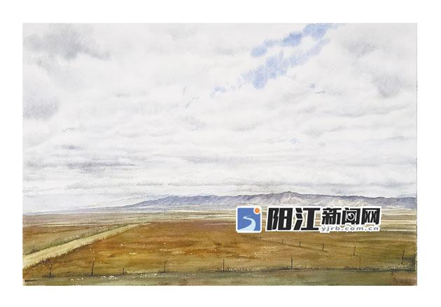 当我面对同乡黄齐成的水彩画《西北草原》的那一瞬,诗意而苍凉之景“天苍苍,野茫茫,风吹草低见牛羊”直涌眼前,洪荒天地的鸿蒙之意亦奔上脑际。