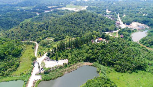 航拍马山河风光。阳江县民主政府成立纪念亭坐落在河畔山岗。 陈国华 摄