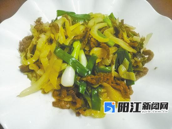用牛肉炒酸菜,荤素搭配,美味可口又营养丰富,最受年轻人喜爱。