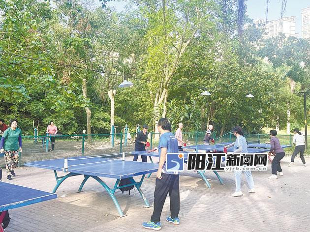 市区鸳鸯湖公园内,市民在打乒乓球。
