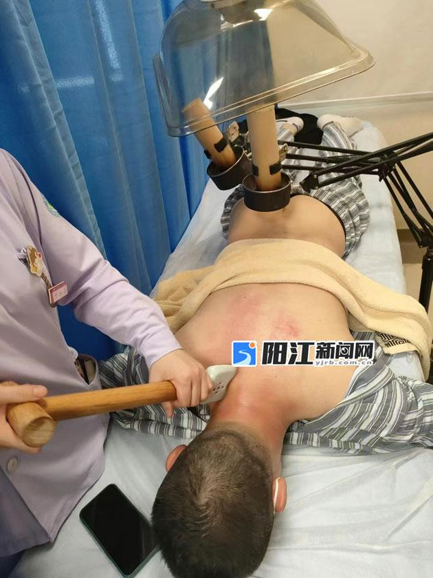医生使用经络铲为患者做颈肩背部理疗。受访单位供图