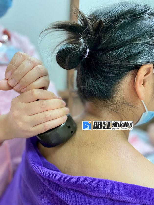 医生通过刮痧调理患者肩颈不适。受访单位供图