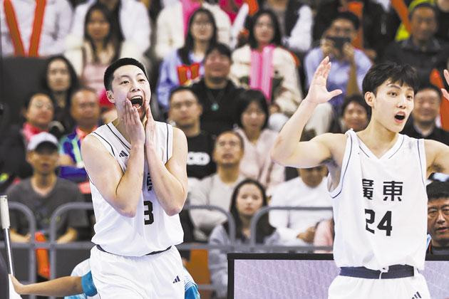 广东队球员胡明轩(左)在比赛中。