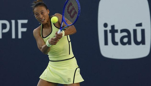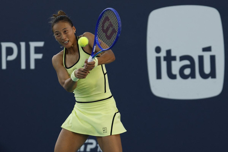 当地时间3月22日,在2026迈阿密网球公开赛女单第三轮比赛中,中国选手郑钦文2比1战胜美国选手凯斯,晋级16强。 新华社发