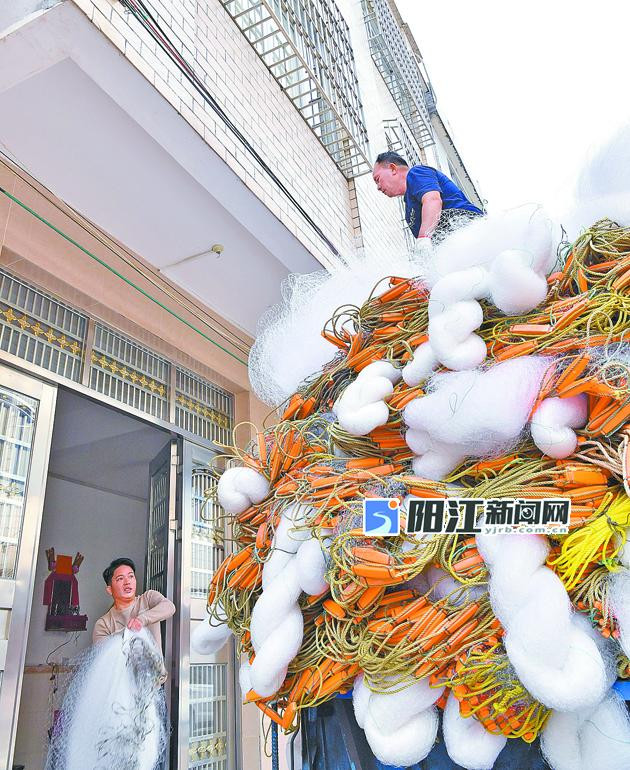 春节来临前,渔民在家里准备节后出海的网具。