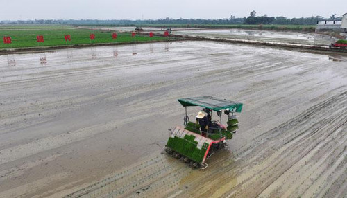 插秧播种关键期,田间地头一派繁忙。宋福亮 摄
