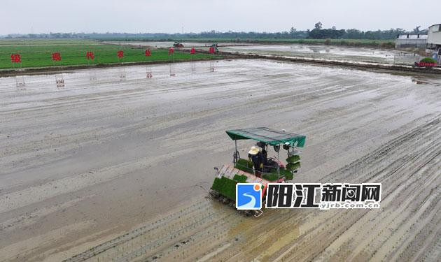 4月2日,记者来到红丰镇潮观村阳江市漠阳香农业发展有限公司的现代农业基地,这里一派繁忙。高速插秧机嗒嗒作响,几个来回,田间便均匀插上了翠绿的秧苗。“这机器一小时能完成约6亩田的插秧任务,传统人工插秧一亩田得花一整天。”该公司董事长黄伯初介绍说。
