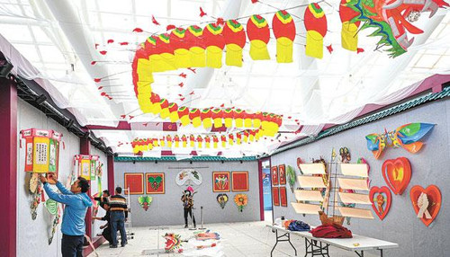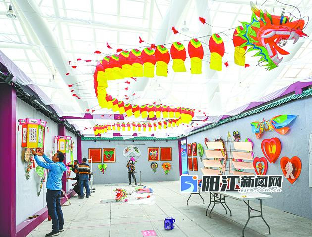 走进非遗艺术展馆的风筝展馆布展现场,迎面而来是一条仿佛在云中穿行的长龙,阔口长须,气势磅礴,这是阳江特色风筝之一——龙风筝。除了龙、灵芝、宫灯等传统风筝,馆内还将展出抗疫主题系列创新风筝,向疫情中的逆行者致敬。为增进群众对风筝文化的了解,展板上还展出风筝制作工艺详细图解,并通过骨架与成品风筝的对比,让大家更直观地感受风筝的复杂工艺和艺术特色。