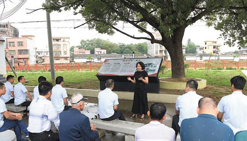 平地村党员群众在大榕树下听专题党课。谭文强 摄