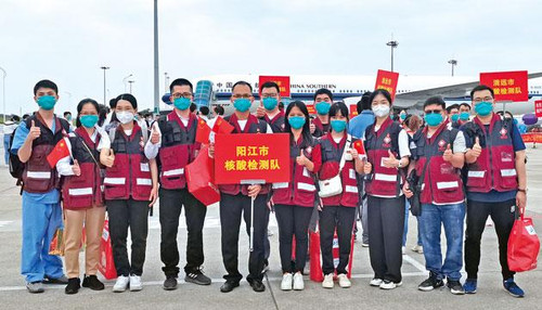 阳江日报讯(记者/王勇明)披甲逆行,载誉而归!阳江市援沪核酸检测队在上海市圆满完成支援任务后,全体队员于5月18日返回阳江。目前,全体队员正在海陵试验区隔离酒店集中隔离休养。