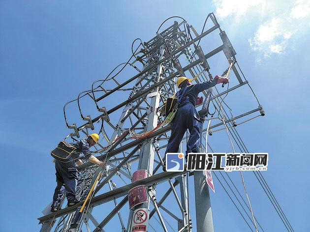 骄阳下,供电运维人员抢修电力设备。 阳江供电局 供图