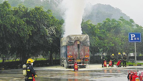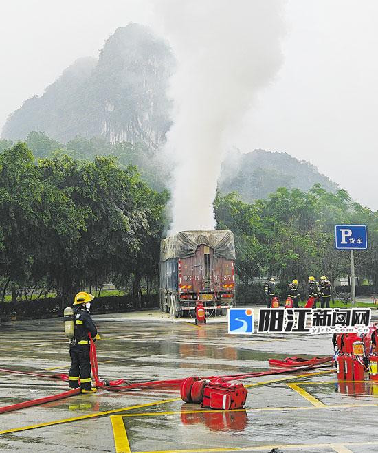 阳江日报讯(记者/吴梦媚 通讯员/左浩)5月11日上午7时31分,市公安局110指挥中心接到报警,称在汕湛高速往湛江方向的潭水服务区内,有一辆货车所载货物处冒出白色浓烟,现场味道非常刺鼻。火情就是警情,接到报警后,市公安局交警支队高速公路四大队执勤民警立即通知消防、应急、路政等部门,一同赶赴现场进行紧急处置。
