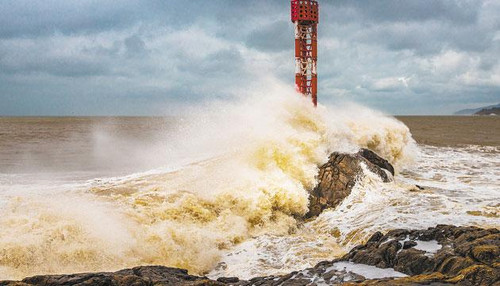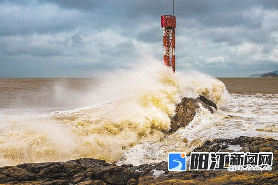 17 日上午11时,台风“泰利”逼近粤西,海陵岛地拿海湾海面上波涛汹涌,巨浪拍打着礁石上的灯塔。阳江日报签约摄影师 刘正亮 摄