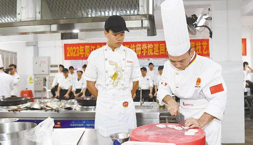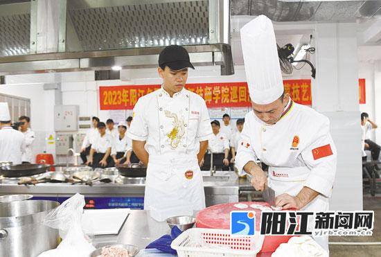 阳江日报讯(记者/林可欣)11月28日,2023年阳江名厨巡回演讲及粤菜技艺展示交流活动首站走进阳江技师学院,4位阳江名厨分享从业经验、演示菜品制作过程,让厨师们、学生们近距离感受烹饪魅力,弘扬粤菜师傅工匠精神。