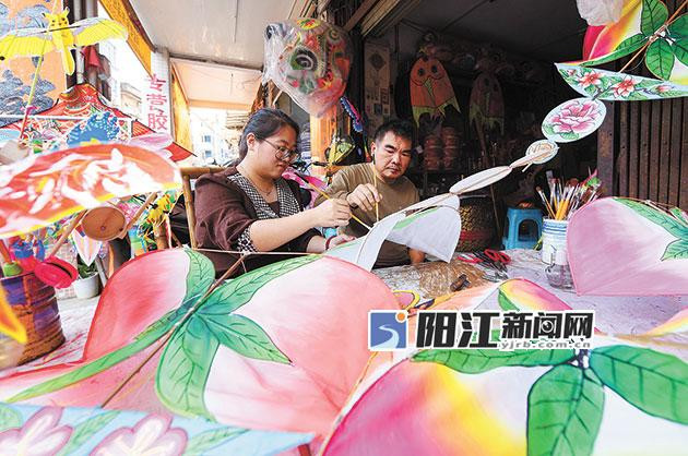 “20多年前,龙津路还有10多家风筝店,并且几乎每家每户都有人会制作风筝。现在龙津路只剩两家风筝店,我这家店主要还是靠卖狮头、乐器盈利,卖出去的风筝大部分也是工业生产的现代风筝。”梁玉泉的这番话,一定程度反映了阳江风筝行业面临的尴尬。